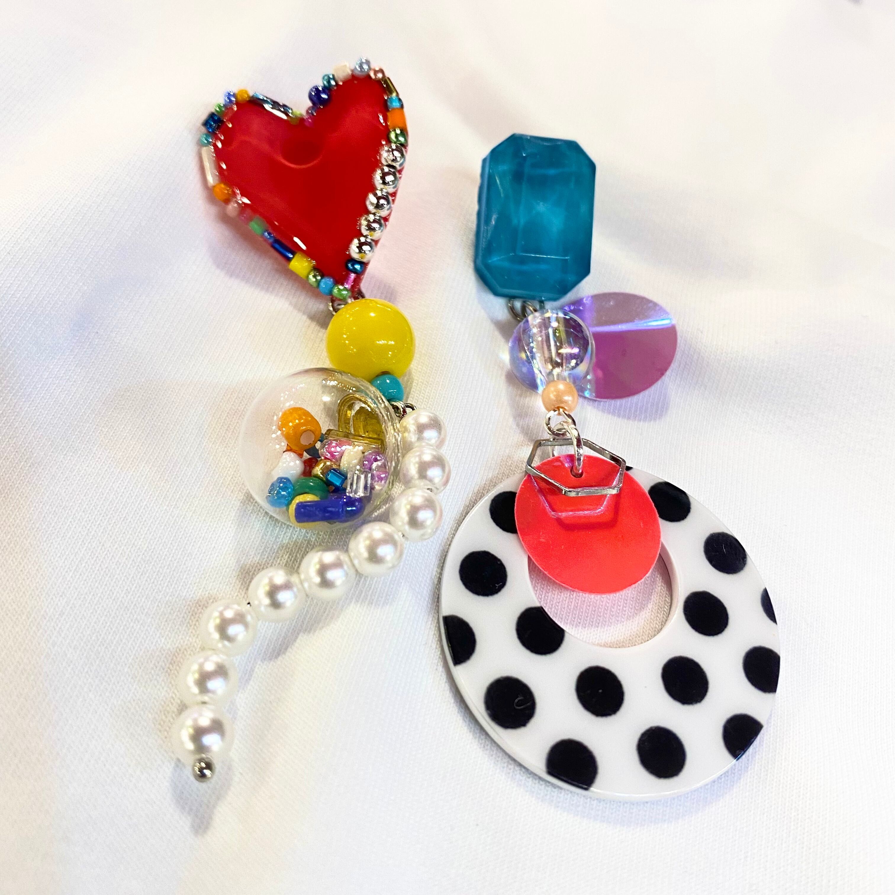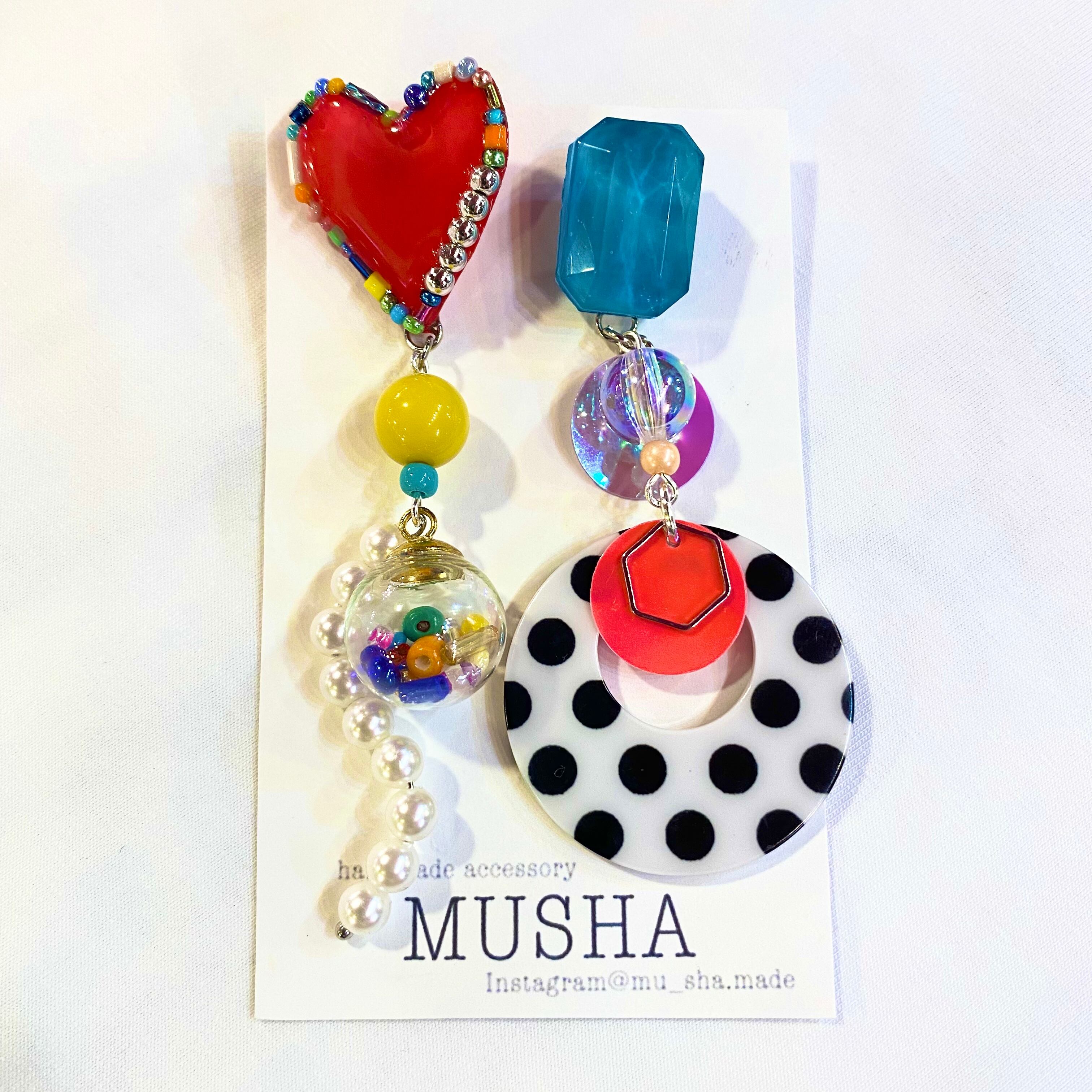 MUSHA/アシメハートとドットのカラフルピアス
